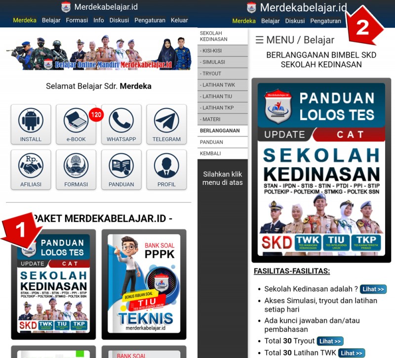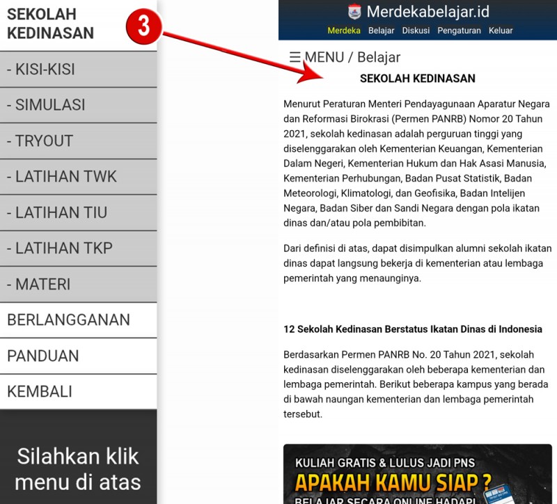 2. Tampilan halaman belajar Sekolah Kedinasan