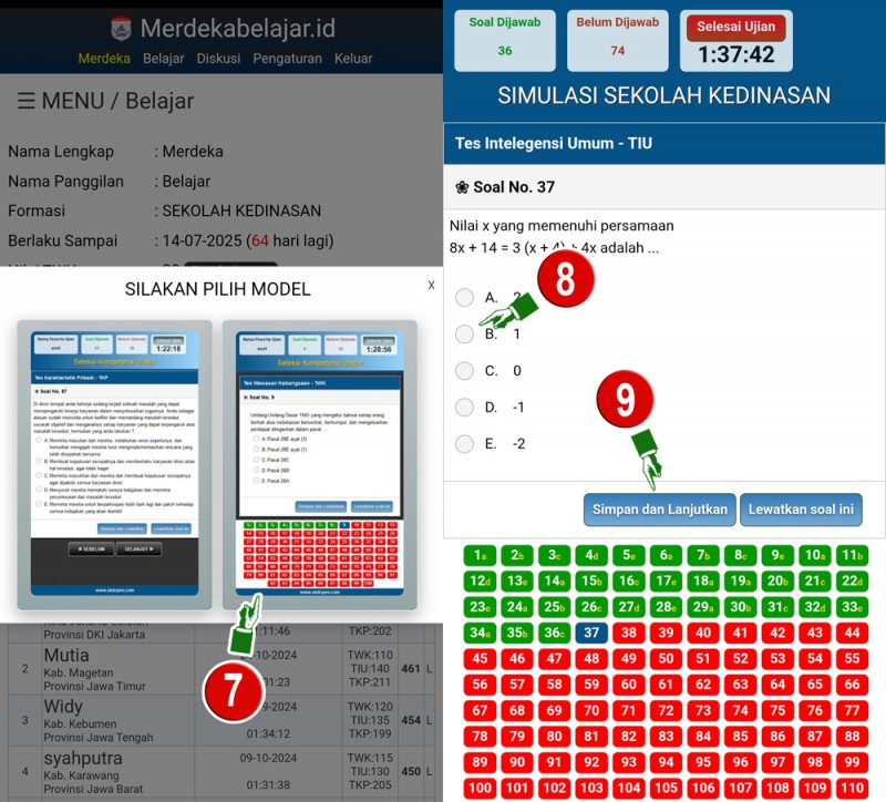 6. Untuk mencoba simulasi SKD Sekolah Kedinasan, silakan klik Mulai Simulasi