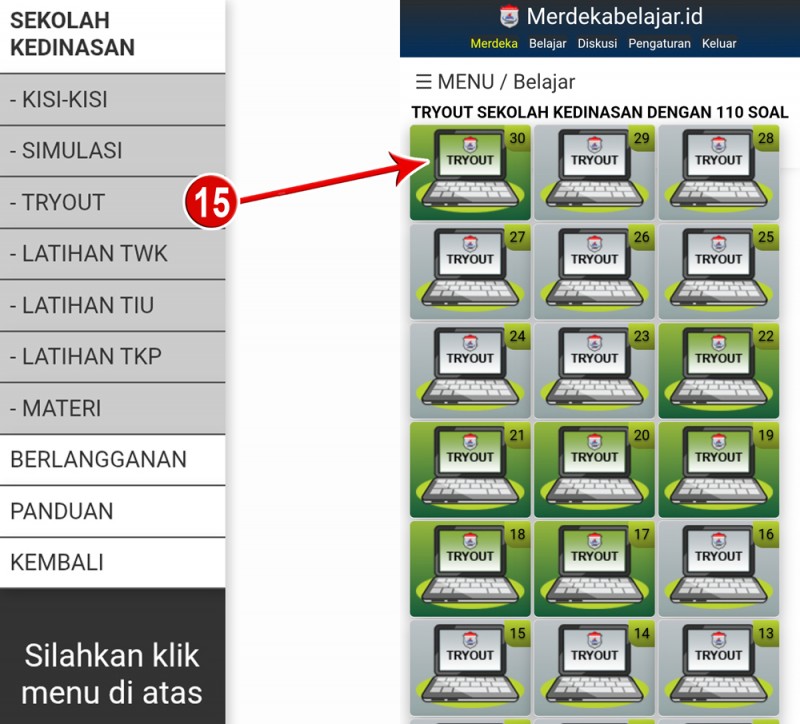 15. Menu TRYOUT - [ Lihat ]