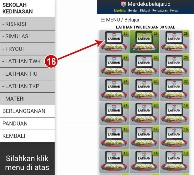 16. Menu LATIHAN TWK - [ Lihat ]
