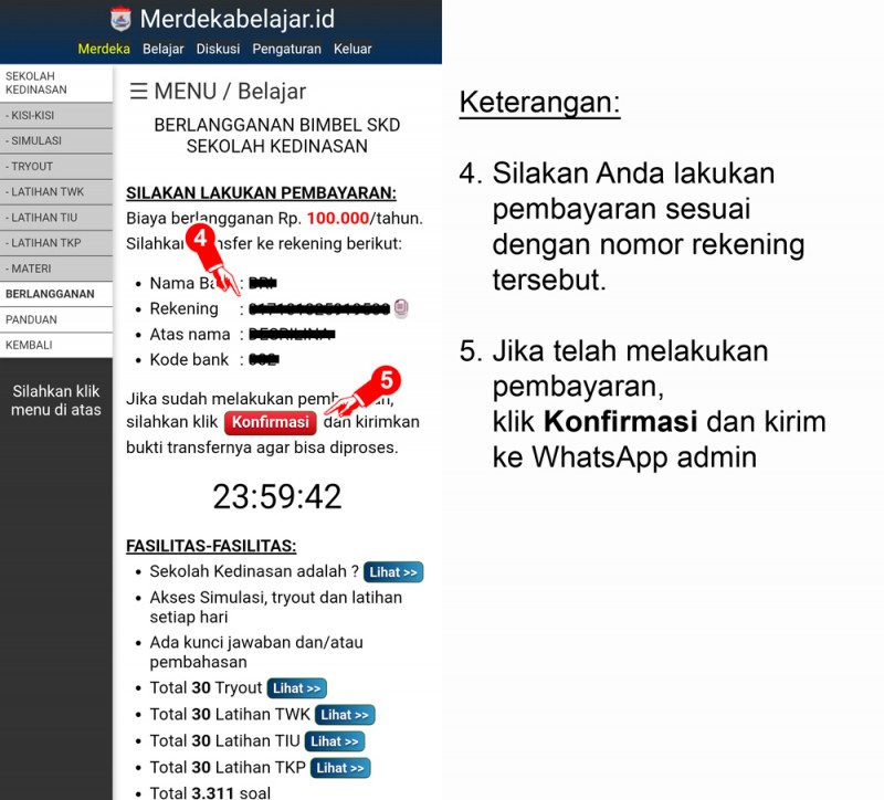 4. Silakan Anda lakukan pembayaran sesuai dengan nomor rekening tersebut.