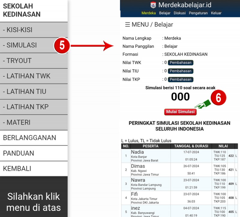 5. Menu SIMULASI - [ Lihat ]